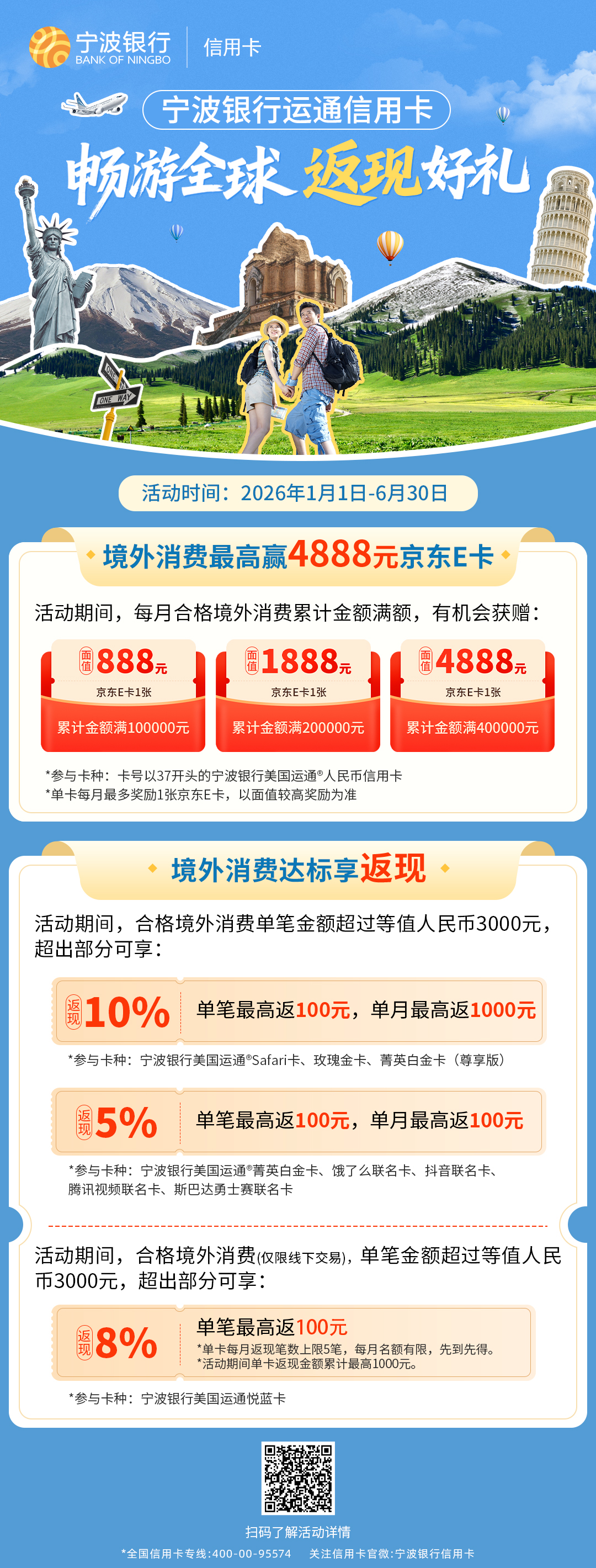 運(yùn)通信用卡跨境福利,最高贏4888元獎(jiǎng)勵(lì)!