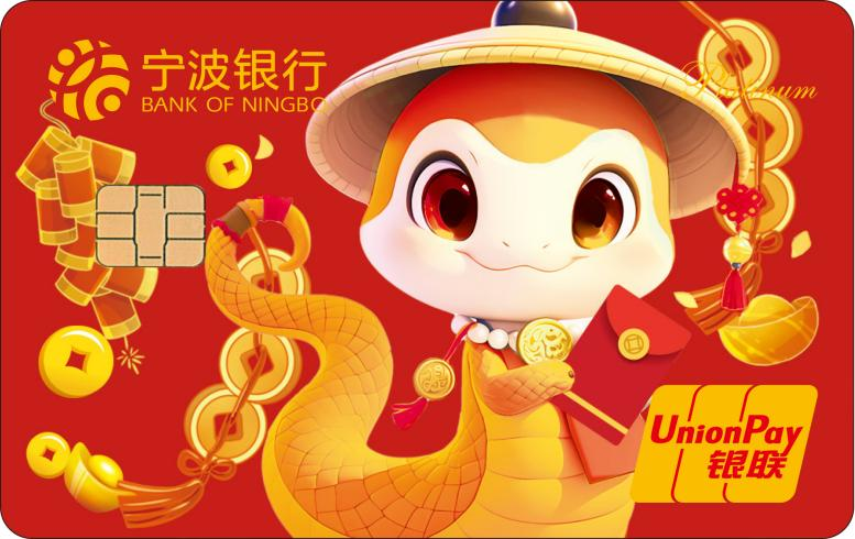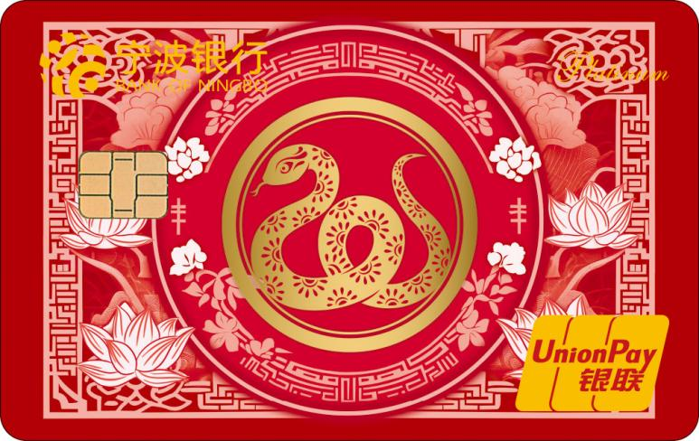 蛇年生肖白金卡是寧波銀行以“金蛇獻瑞,開卡有福”為主題在蛇年發(fā)行的白金借記卡,共推出“典雅版”和“萌趣版”兩款?!暗溲虐妗痹O(shè)計運用中國傳統(tǒng)剪紙手法設(shè)計,金色生肖蛇圖案盤繞在繁花似錦的蓮花中,透過花窗之美,盡顯活色生香的古色風韻?!懊热ぐ妗币钥ㄍㄉ邽榛{(diào),三維立體的造型搭配春節(jié)喜慶色調(diào)以及元寶金幣的元素,象征著財富和收獲??ㄆ哂袃π?、轉(zhuǎn)賬結(jié)算、購物消費、代收代付、個人理財、電話銀行等多種功能。